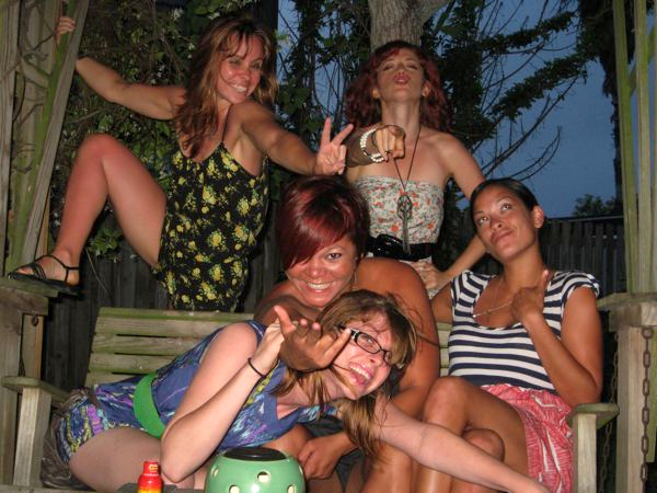 This is Amy and Nina, posing in the hanging wooden recliner in the backyard. I wish you could have seen how adorable this yard was! There was a hammock, a little fountain, flowers everywhere. But we made the most photo opp use out of the recliner.
